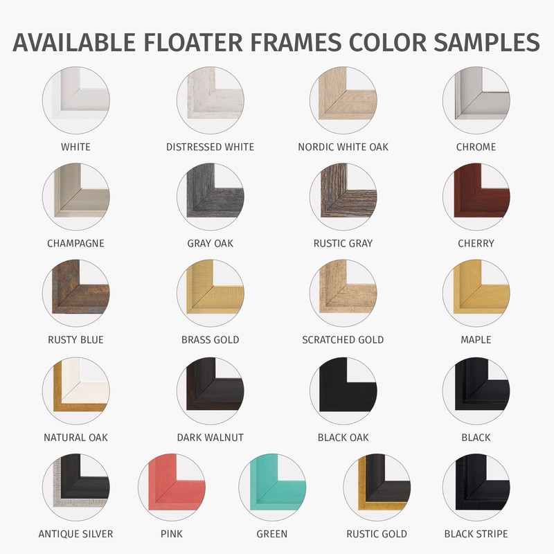 - [ Material ] Floater Frames are made from robust Polystyrene (PS) foam, ensuring durability. Coated with an elegant acrylic film finish, these frames offer a perfect balance of strength and luster for your art