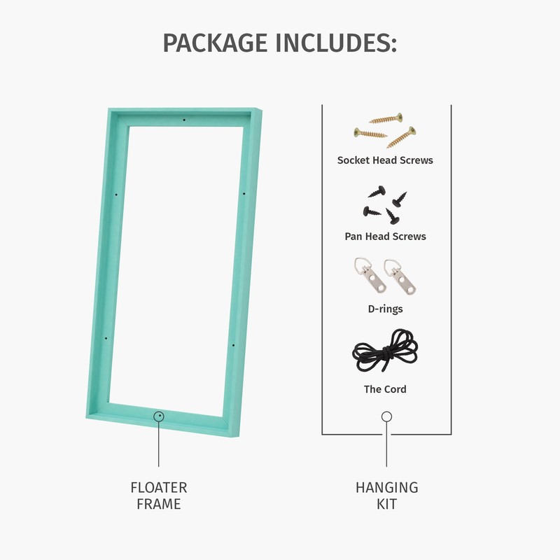 - [ Hardware ] Every Floater Frame comes with pre-drilled holes for easy canvas installation. Included in the package are two D-ring hangers and wire for effortless setup, along with socket head screws and pan head screws. Please use a standard or electric screwdriver to secure your artwork to the floater frame conveniently