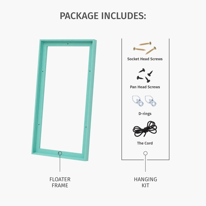 - [ Hardware ] Every Floater Frame comes with pre-drilled holes for easy canvas installation. Included in the package are two D-ring hangers and wire for effortless setup, along with socket head screws and pan head screws. Please use a standard or electric screwdriver to secure your artwork to the floater frame conveniently