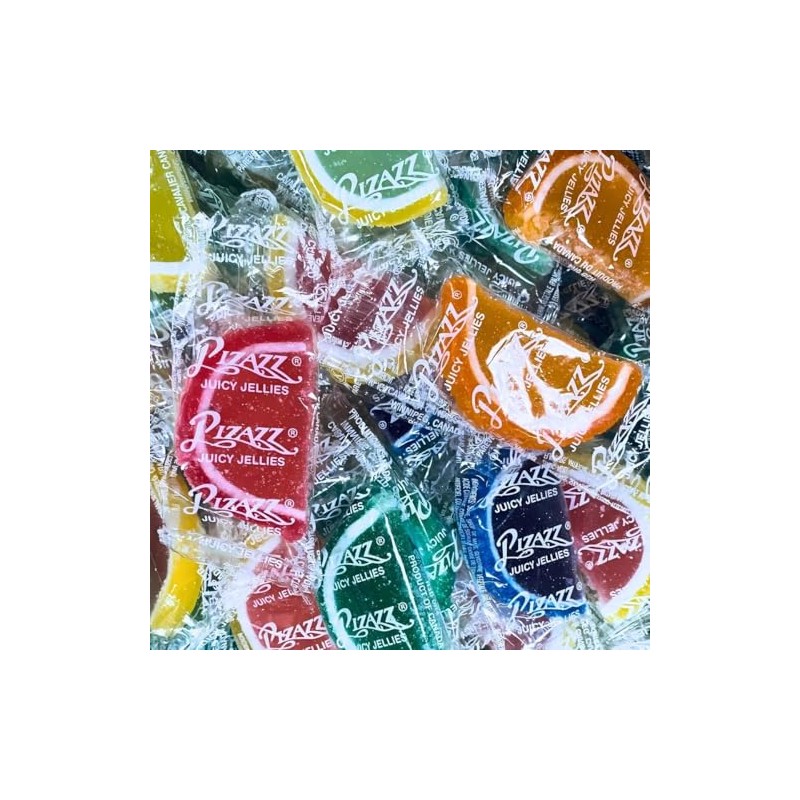 - JUICY JELLIES: These fruit slices are colorful, sugar-coated jelly candies shaped like vibrant fruit wedges. Each slice is bursting with a juicy, fruity flavor, offering a sweet and tangy taste that candy lovers will enjoy. With a soft, chewy texture and a rainbow of flavors like blue raspberry, grapefruit, key lime, cherry, lemon, lime, orange, raspberry, watermelon, these jellies are a delightful treat.