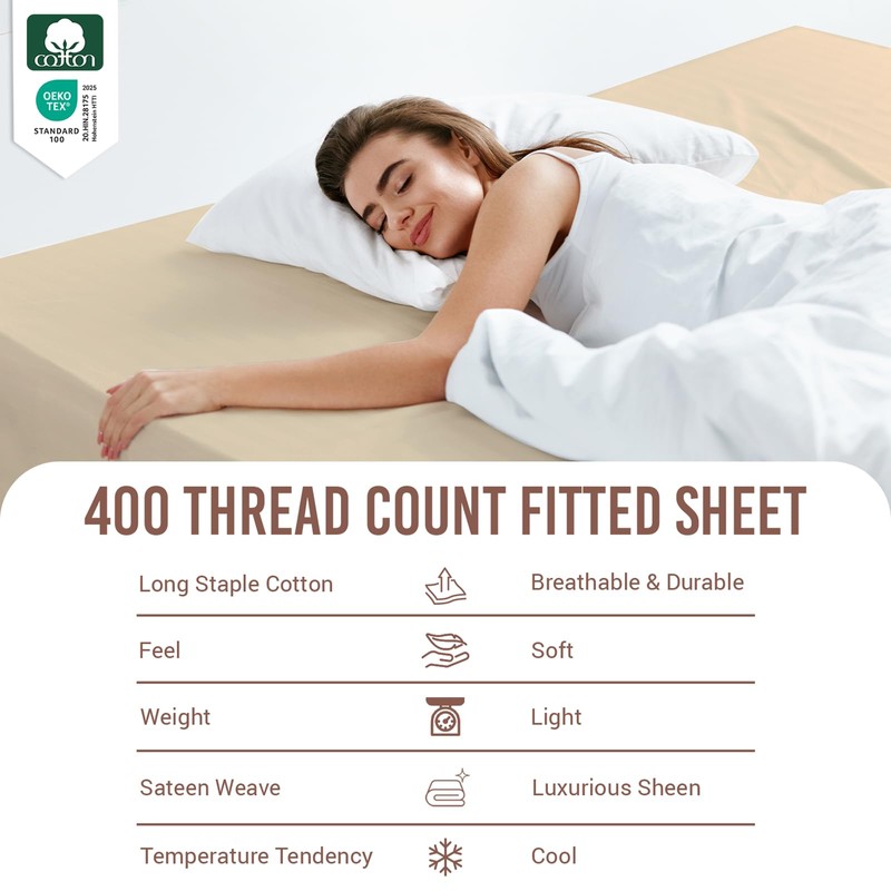 - Cool, Breathable & Smooth: Made from 100% long-staple combed cotton sateen weave, these 400 thread count fitted sheets offer a gentle touch against your skin. The compacted yarn technique and minimal artificial processing promote breathability, prevents sweat and wick moisture, helping you stay cool and comfortable throughout the night