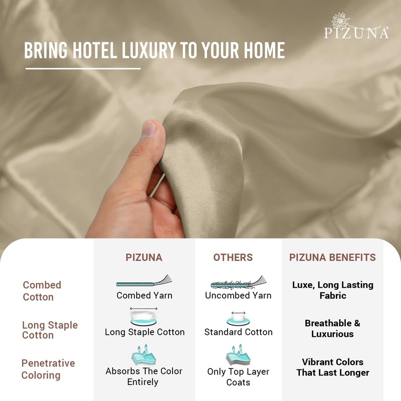 - Pizuna Cares: Thousands of happy families and media outlets have praised this luxurious hotel bedding. However, if you're unhappy with the product, you can return it for a full refund within 30 days, beyond that our customer care team will be there to assist you as well.