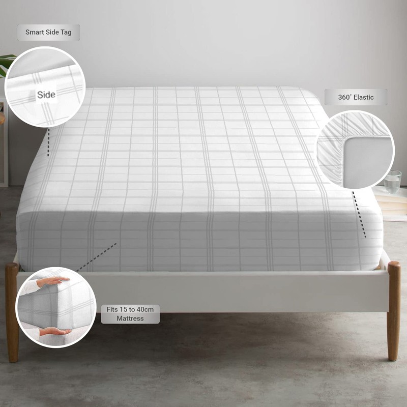 - BIG CHECKS COOLING FITTED SHEET INCLUDES: Double fitted sheet deep fit 140cm x 200cm + 40cm. It fits your mattresses up to 40cm thick. Fully elasticized top-quality Sateen Fitted Sheet with deep pockets & Smart Side Tag. These fitted sheets come with a specially patented stitching pattern & high quality 360° all around elastic with tight fitting. You can protect your mattress in our fitted sheets with smooth surfaces and in wide-ranging colors.