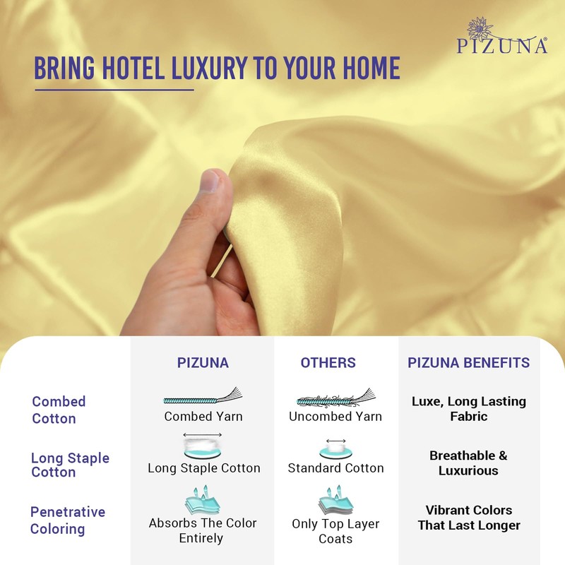- Authentic Premium Combed Cotton: Using Pizuna's fine yarn technique in these authentic 1000 Thread Count fitted bed sheets single features a single dent (4 up-1 down) sateen weave, enhancing its sturdiness and smoothness. Pure and natural mercerized combed cotton wrinkles initially, but it softens with each wash and the wrinkling reduces.