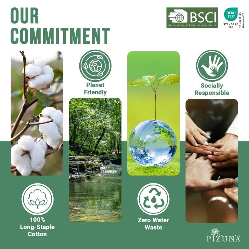- Pizuna Quality Standard: Pizuna products are individually tailored, measured and checked (piece by piece) by our Quality Assurance team. The fabric in these king size sheets set is OEKO-TEX & AZO-Free Certified (2024), free from synthetic substances and planet-friendly, making it soothing even for the most delicate skin