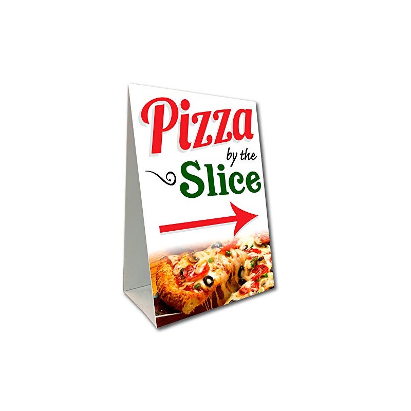 Pizza by The Slice (Arrow) Economy A-Frame Sign 2 Feet Wide by 3 Feet Tall (Made in The USA)