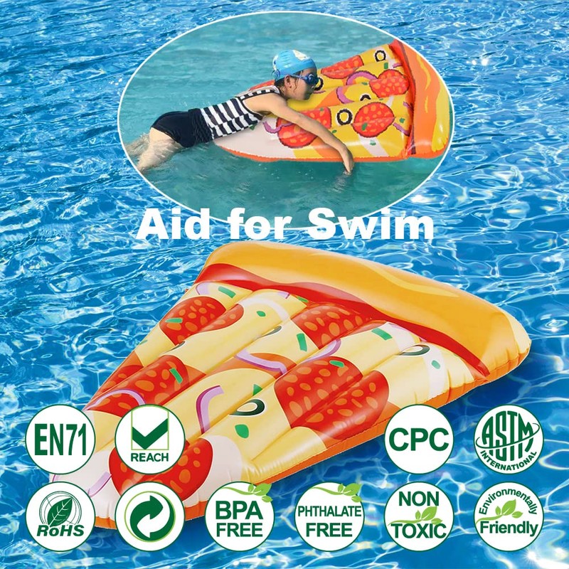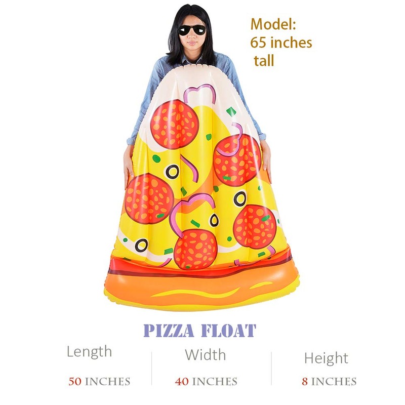 - Pizza design: You should be enjoying summer water fun and show off floating life on the pool with 2 slice pizza pool float.