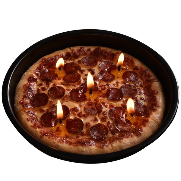 - Pack of 1 Pizza candle (Material: Vegetable Wax 85%±5%,Beeswax 15%±5%) with a pizza pan. Made by wax. Do Not Eat. Keep out of reach of children!