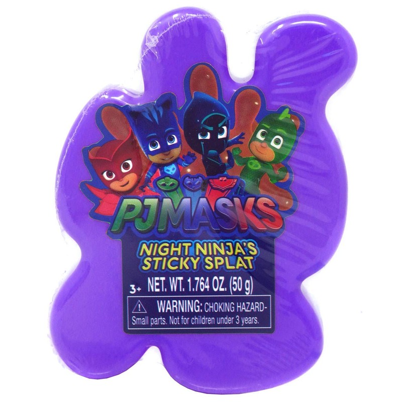 - Now kids can recreate the PJ Masks action with real life sticky splats! The PJ Masks night Ninja's sticky Splat putty comes in a sticky Splat shaped container to help hold and mold The putty. Kids will love Stretching, Squishing, tossing and sticking this fun tactile putty! The putty is available in three colors including: green, orange, and purple (Each sold separately). Ages 3+