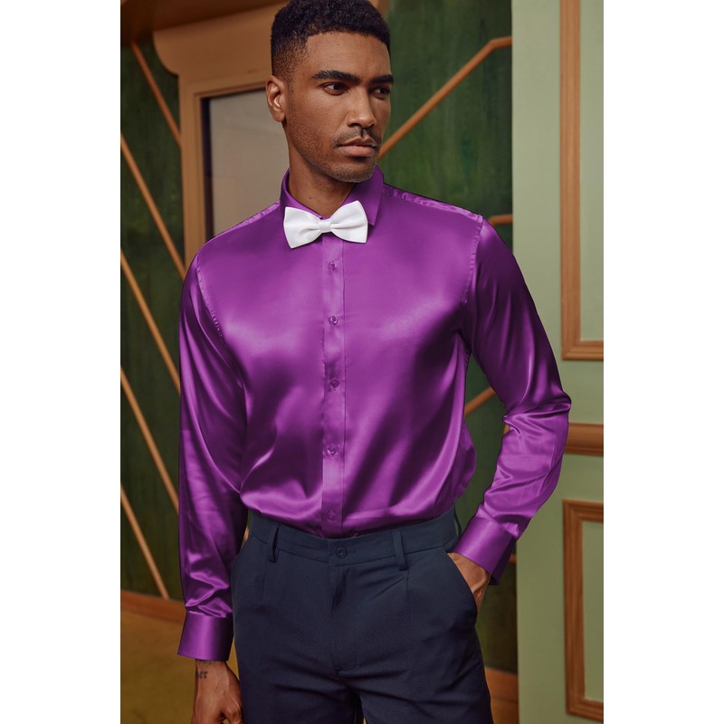 - Premium Silk-like Material: Mens Satin Shirt offers a luxurious feel and an elegant sheen. The smooth, comfortable fabric mimics the look and feel of real silk, light and drapey, making it perfect for sophisticated statements at any event