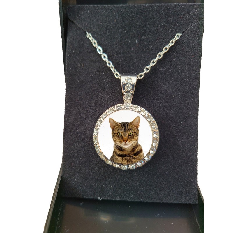 PJ4U Tabby Cat Pet Family Silver Colour Necklace With Diamante Pendant And Gift Box