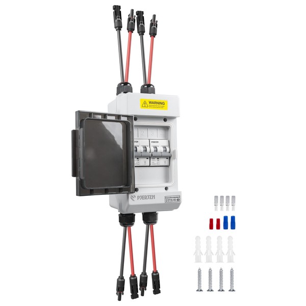 Pjerjzn Solar Panels Disconnect Switch 60A 1000VDC PV Shut Off Switch 2 String Circuit Breaker Box IP66 Waterproof UV-Proof