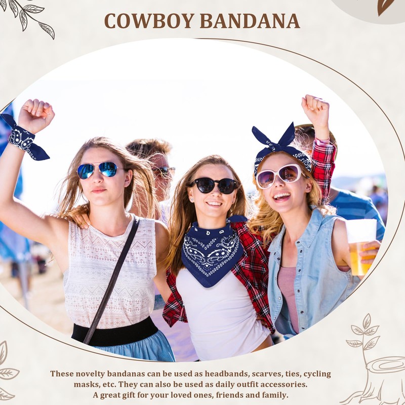 - Suitable Size for Versatile Uses: With a size of 55 x 52 cm/ 22 x 20 inches, these cowboy bandanas are proportioned for a multitude of uses. Use them as stylish headbands, napkins for your outdoor picnic, or even as a pocket square.