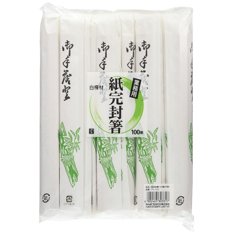 PK-002 Benchopsticks, White Birch Genma, Paper Sealed Chopsticks, Pack of 100, Paper Sealed Bamboo Pattern Type
