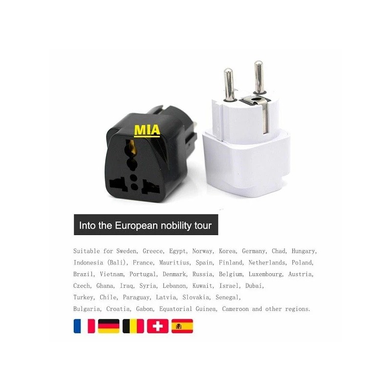 - It converts 3-pins or 2-round-pins AC plug to German style.