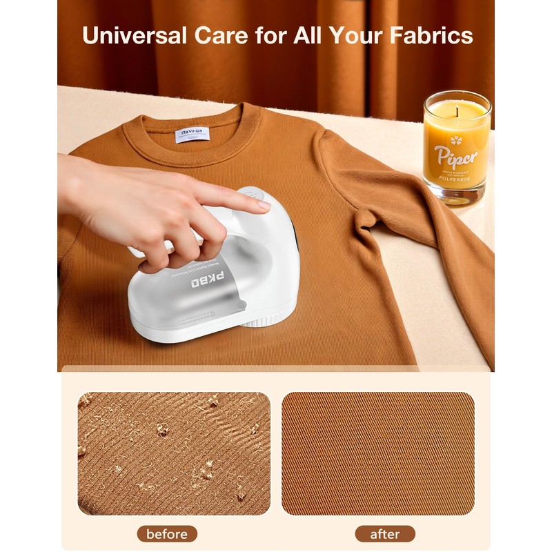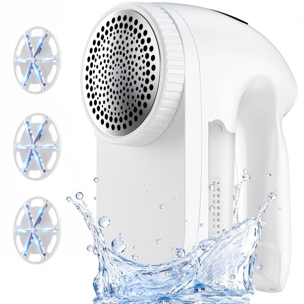 PKBD IPX6 Waterproof Washable Electric Fabric Shaver and Lint Remover, Rechargeable Sweater Defuzzer with 3 Free Extra Blades, Quickly and Effectively Remove Fluff, Fuzz, Bobbles for Clothes, White