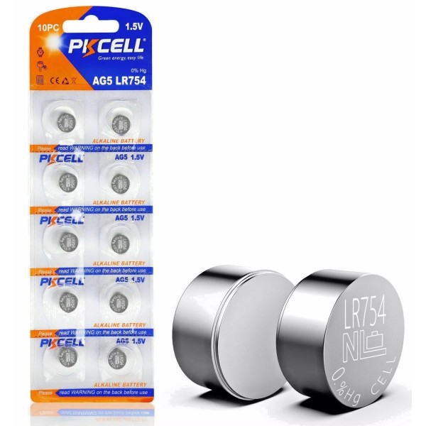 PKCELL 10X LR754 AG5 SR754 G5 SR48 393 193 309 D309 1.5V Alkaline Button Cell Battery