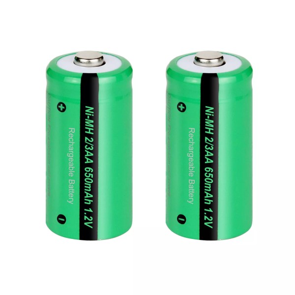 Package included:2pcs 650mAh 2/3AA NiMH Rechargeable Batteries