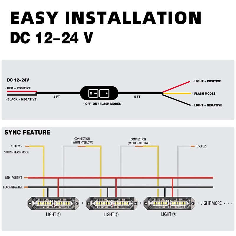 • It is recommended to connect up to eight 12-LED Sync Feature Emergency Strobe Grille Lights.