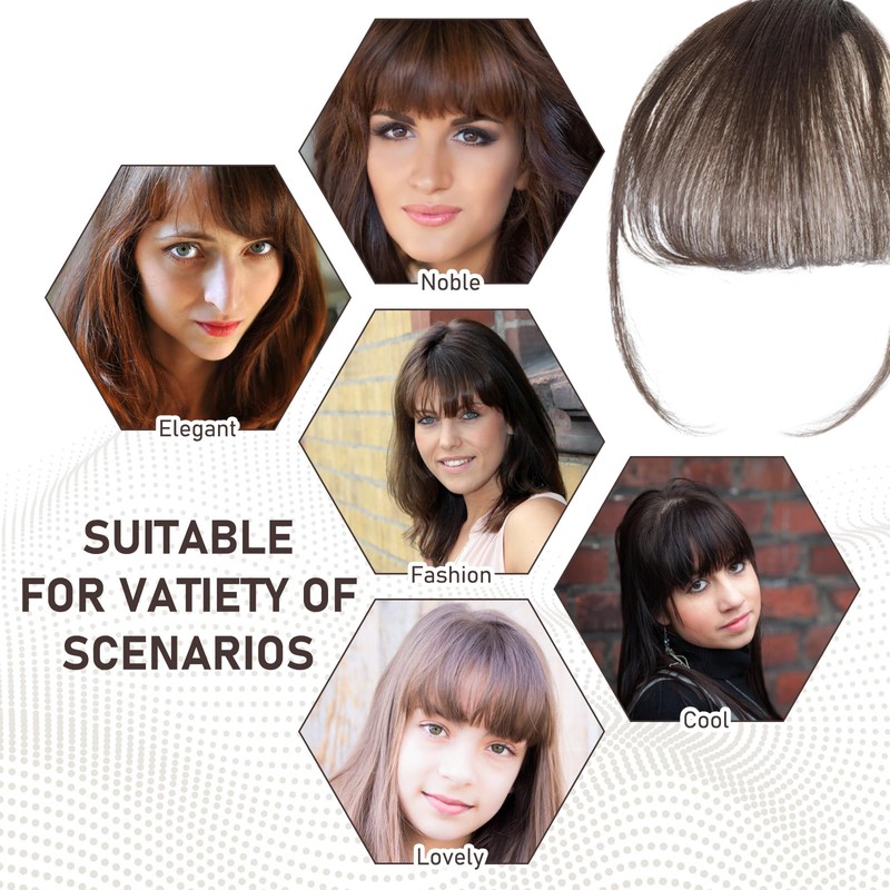 - Classic Color: Wearing fake bangs allows you to show your unique temperament. The dark brown color is very versatile, whether you are wearing professional or casual clothes, you can match it. In addition, the dark brown clip on bangs for women also has a low-key and elegant beauty, which can inadvertently enhance the overall layering of your look.