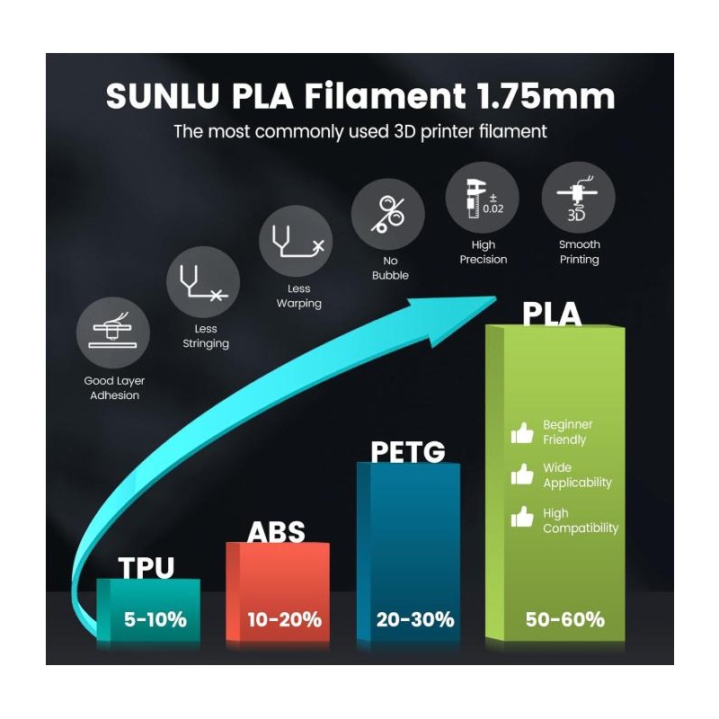 PLA/ PLA+/PLA META 1KG Standard Filament Neatly Wound 1.75mm ±0.02mm Accuracy...