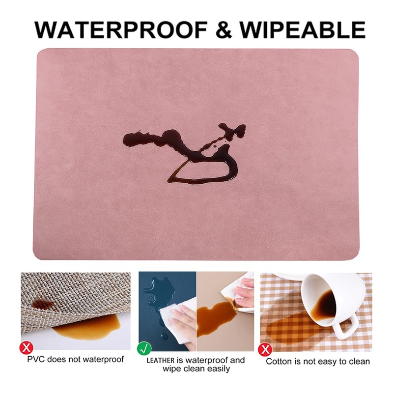 Placemats for Dining Table Set of 4,Design-Classic Faux Leather Eco-Friendly Place Mats,Waterproof&Stain Resistant Table Mats,Washable,Heat-Resistant,Non-Slip for Dining Table Decor (Pink, 4)