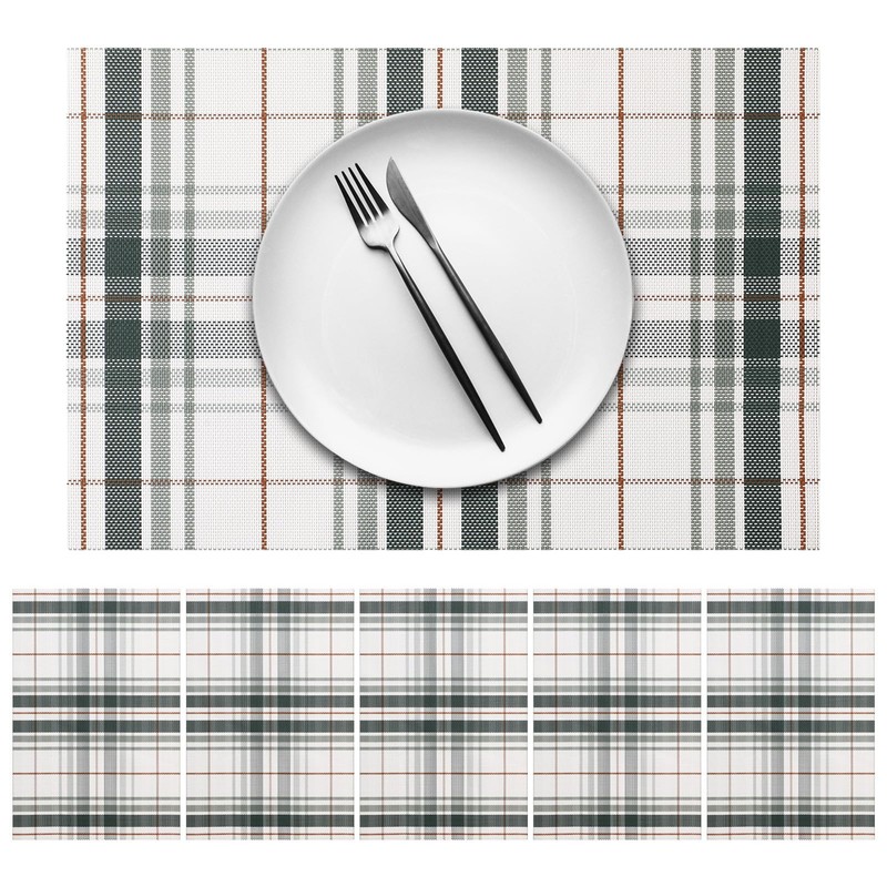 Placemats Set of 6 Table Mats - Kitchen Protector Tablemat for Daily Use or Decoration Heat Resistant Washable Waterproof Coating Green Plaid