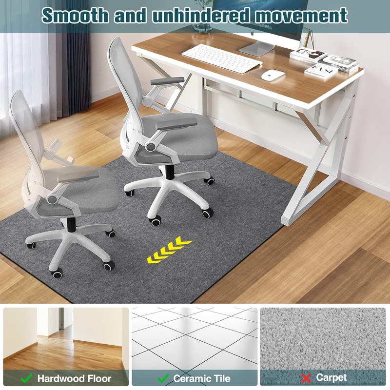 - 【Best Partner for Floor Protection】Office chair mat prevents the wear of wheels or floors such as hardwood,tile,laminate and linoleum and prolongs their life.It also helps reduce the noise of rolling chairs,even when playing games or working at night without disturbing others