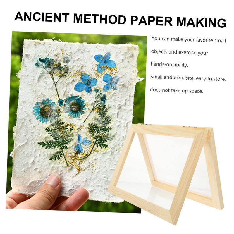 - Paper making screen and deckle: 【material】 paper making screen frame is made of nature wood and mesh composition. the yarn is not very elastic, please not use strong pressure during the process of making paper.