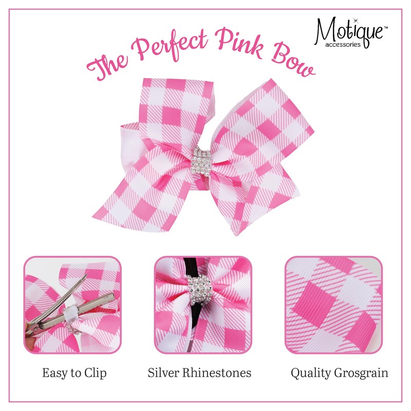 Plaid Hair Bow Hair Clip 6 Inch Checkered Bow Hair Clip (Pink)