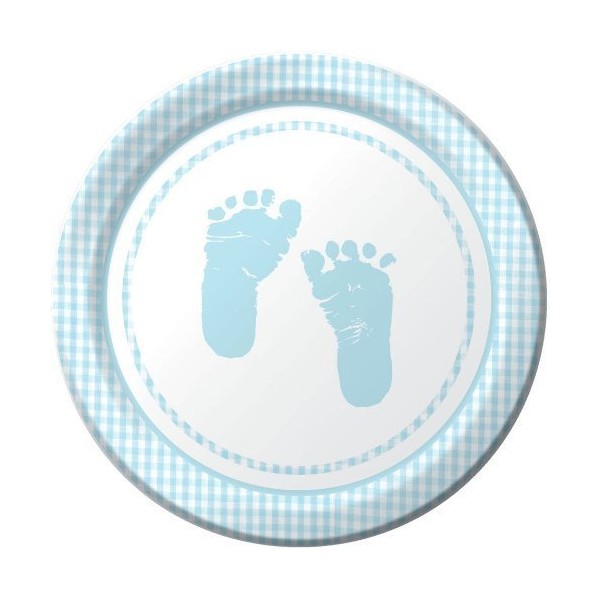 Plaid It's a Boy Footprints Lunch Plates, 8ct, Baby Shower Supplies and Decor