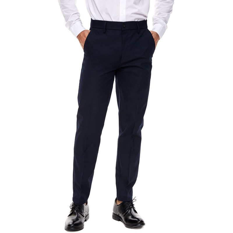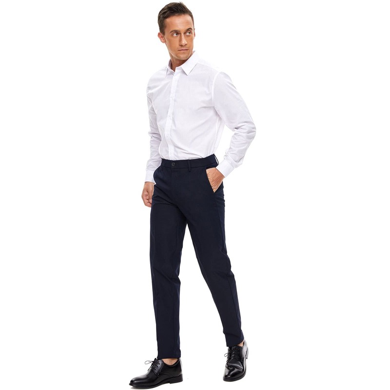 - Combina estos pantalones chinos para hombre con una chamarra blanca con botones y a juego, o incluso simplemente la camisa para crear un atuendo que te sentirás genial al usar en la oficina. Los pantalones de vestir ajustados de poliéster flexible mecánico para hombre te ayudan a lograr un aspecto elegante y suave.