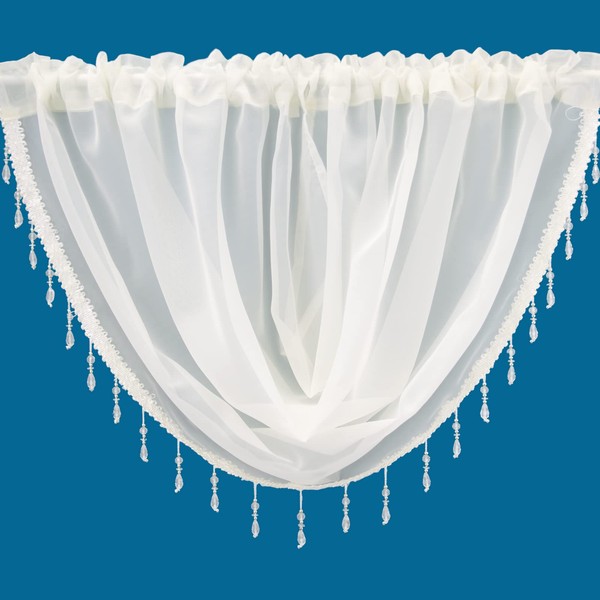Plain Beaded Voile Swags Net Curtains Voile Swag Valance Pelmet (Cream)