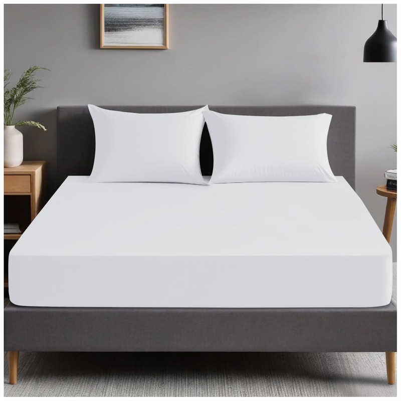 Plain Dyed Bedding Bedsheet, Ultra Soft 4Ft Fitted Bed Sheet, Non Iron Polycotton Percale Sheets, White