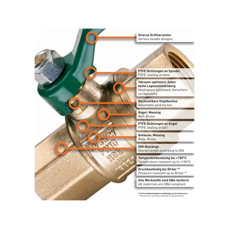 - Gemäß DIN DVGW Reg.-Nr.: NW-6102AT2438 für die Trinkwasserinstallation zugelassen // Gehäuse: Messing CW 617 N, Kugel: Messing CW 614 N, poliert verchromt, Spindel: Messing CW 614 N, roh
