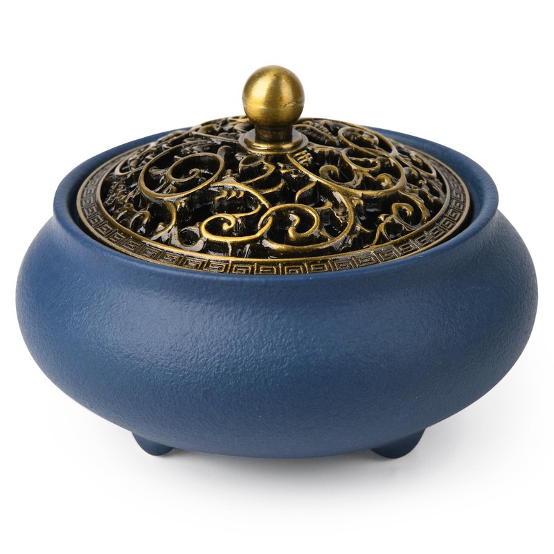 - 【Unique Design】Ceramic incense burner, catches the ashes to avoid dropping everywhere, the lid is made of metal material with hollow carvings and exquisite flower shapes feels solid and elegant, brass gourd incense stick holder, which is heavy enough to hold the stick securely