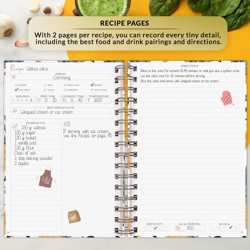 - STICKERS, STORAGE POCKETS & OTHER EXTRAS – This recipe notebook comes with a sheet of colorful stickers with rose gold detailing and an illustrated user guide. At the back, you will find 2 storage pockets for loose recipes and other notes.
