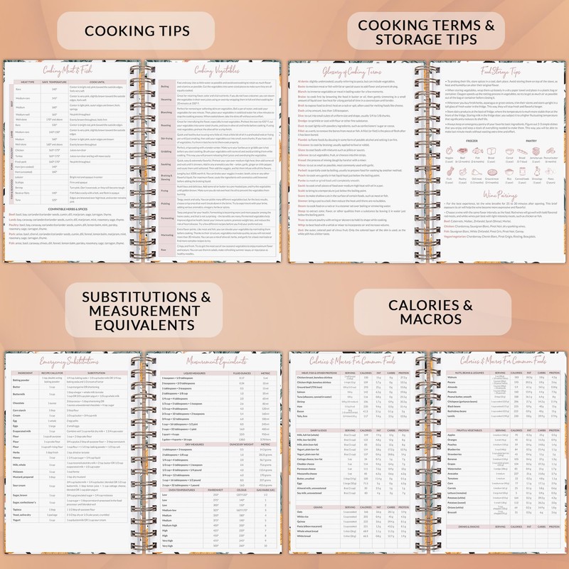 - STICKERS, STORAGE POCKETS & OTHER EXTRAS – This recipe notebook comes with a sheet of colorful stickers with rose gold detailing and an illustrated user guide. At the back, you will find 2 storage pockets for loose recipes and other notes.