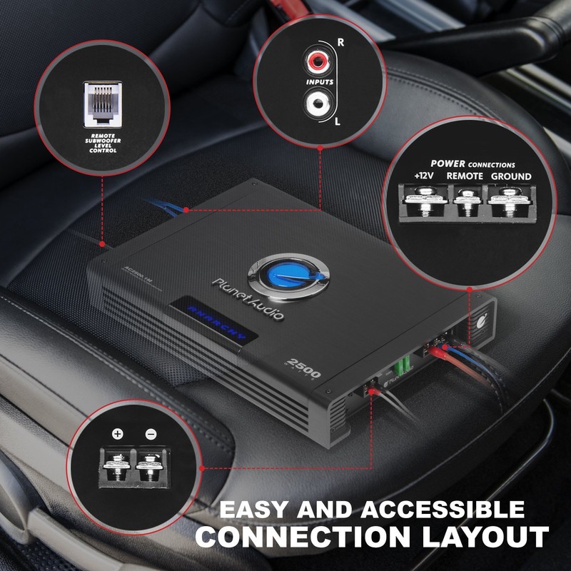 Planet Audio AC2500.1M Monoblock Car Amplifier - 2500 Watts Max Power, 2/4 Ohm Stable, Class A/B, Mosfet Power Supply, Remote Subwoofer Control