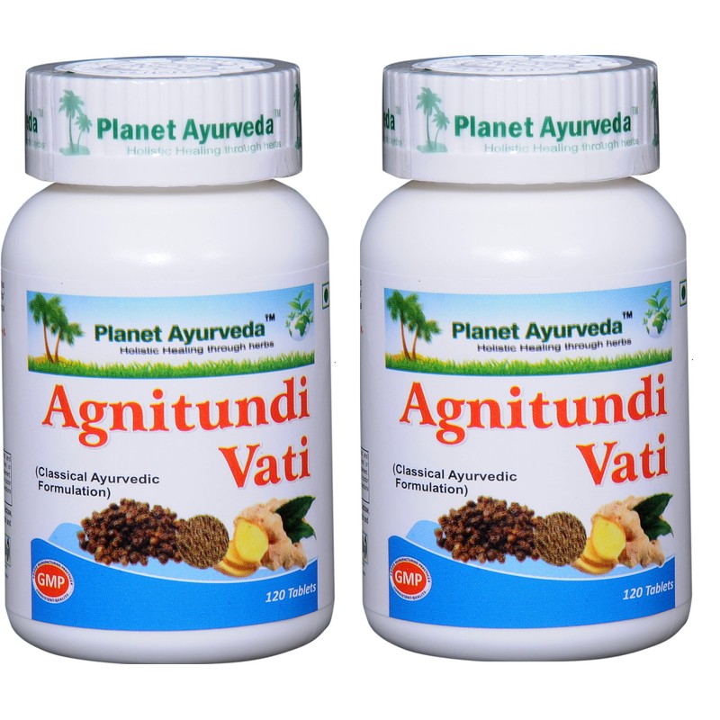 Planet Ayurveda Agnitundi Vati - Herbal Tablet, 500 Mg Veg Tablets - 2 Bottles (Each Bottle Contains 120 Tablets)