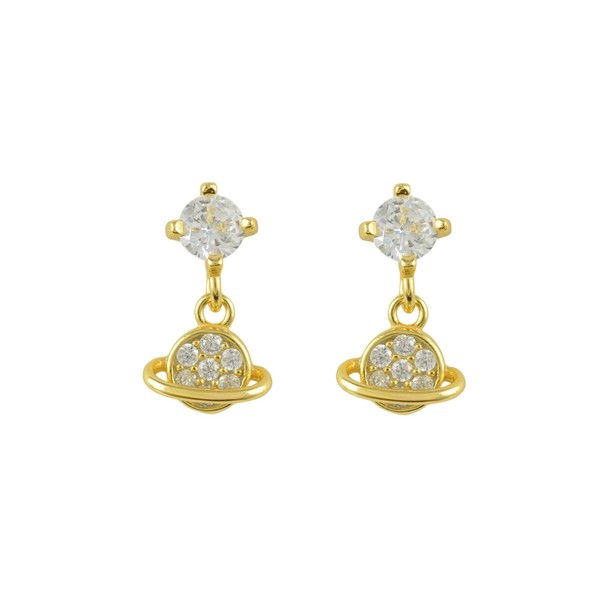 Planet Drop Zirconia Stud Screw Back Earrings For Women Girls Minimalist 925 Fashion Sterling Silver 18k Gold Plated, Platinum Plated Hypoallergenic Jewellery with Gift box (18k Gold)