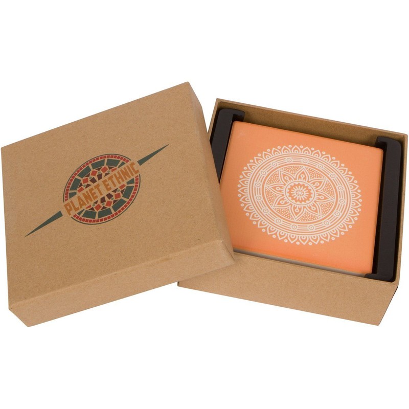 Planet Ethnic Colorful Mandala Circles Designer Ceramic Coaster Set (4 Coaste...