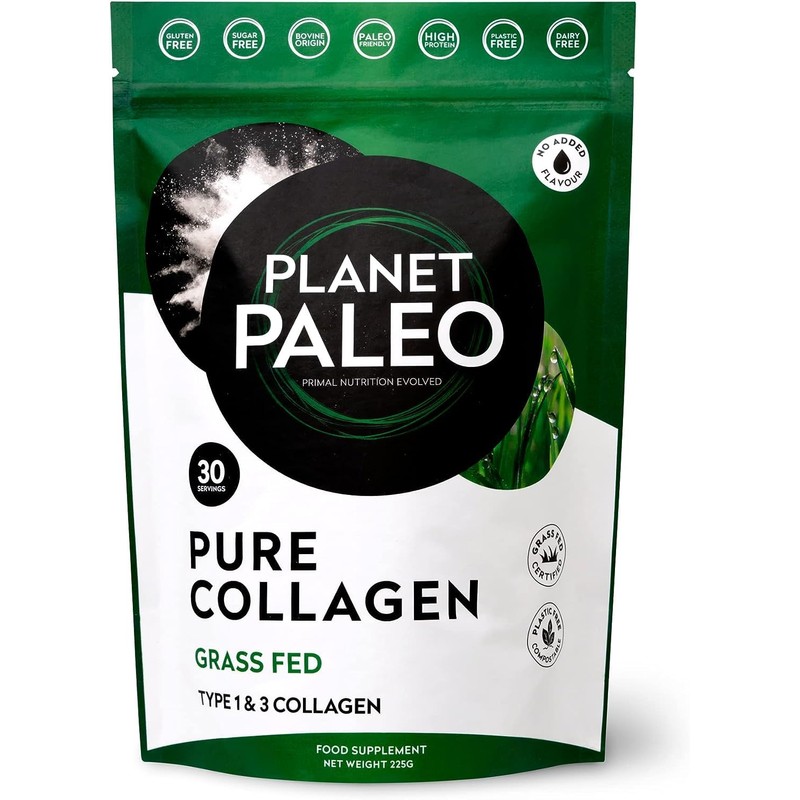 Planet Paleo Pure Collagen Powder (30 Servings, 225g) | for Healthy Skin, Joints, and Gut Health | Grass Fed, Non-GMO and Gluten-Free Bovine Collagen