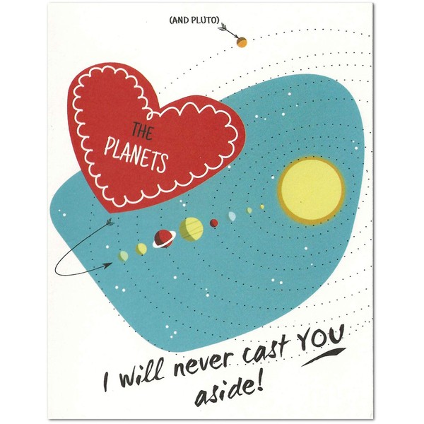 - FRONT: "The Planets (and Pluto) | I would never cast YOU aside!" INSIDE: "You are the center of my universe!"