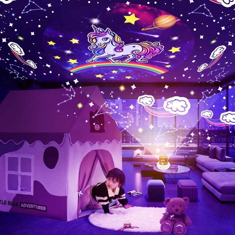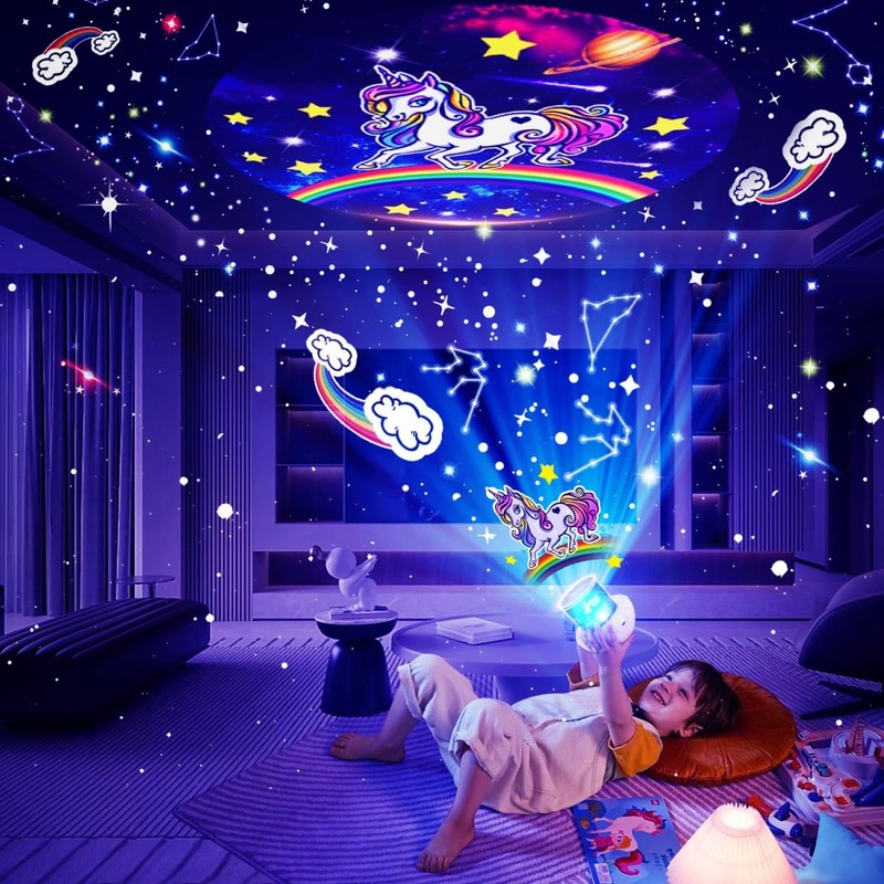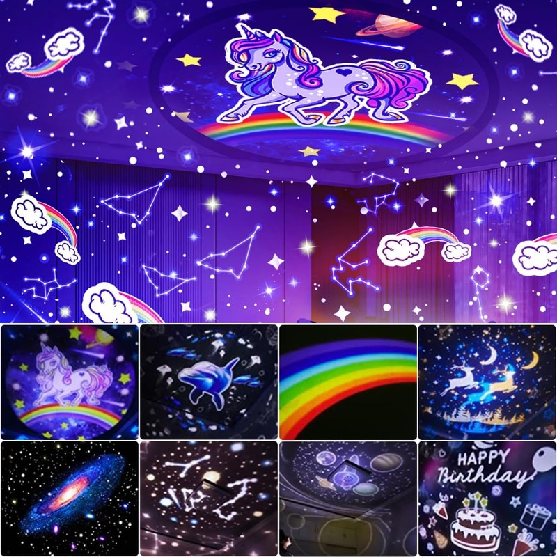 Planetarium, Home Use, Popular, Authentic, Jellyfish, Dolphin, Mermaid, Whale, Unicorn, Dinosaur, Kids, Night Light, Bedside Lamp, Nursing Light, 360° Rotation, Adjustable Brightness, Children's Room Gift (Unicorn)