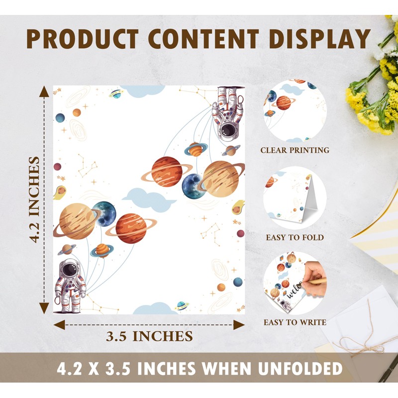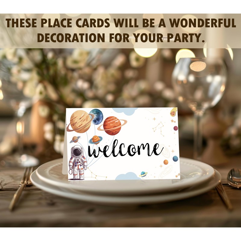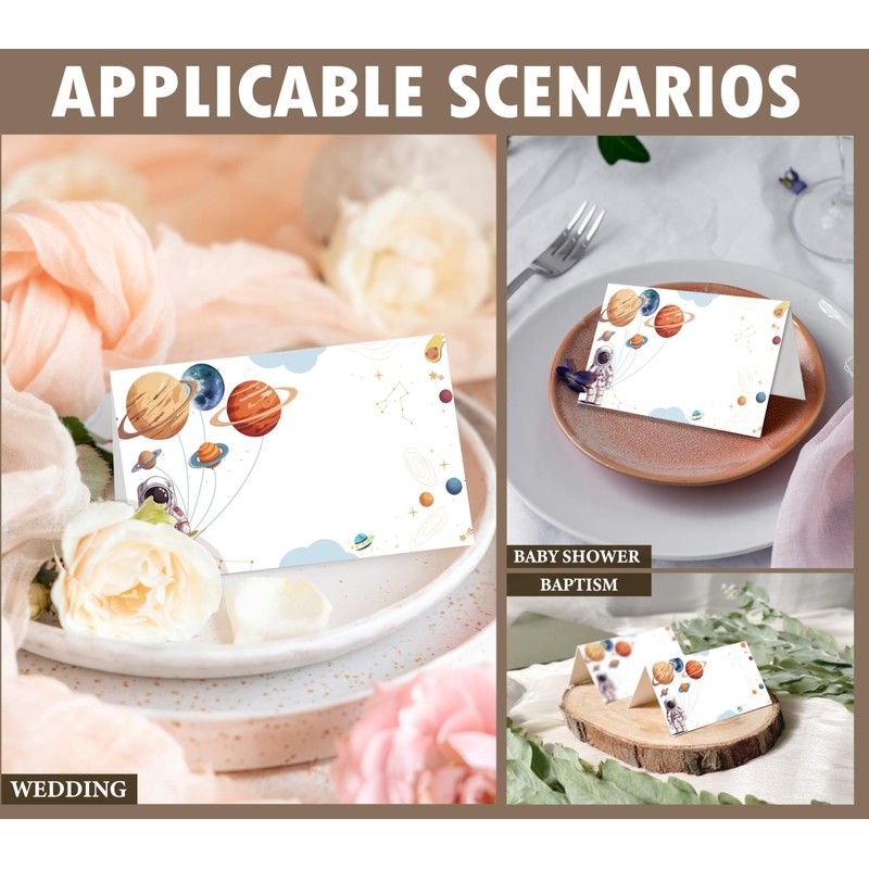 Planets Themed Place Cards, Outer Space Themed Seat Cards For Table Setting, Pack of 25 Half-Fold Reception Place Card, Decorations For Baby Shower Birthday Events -A05