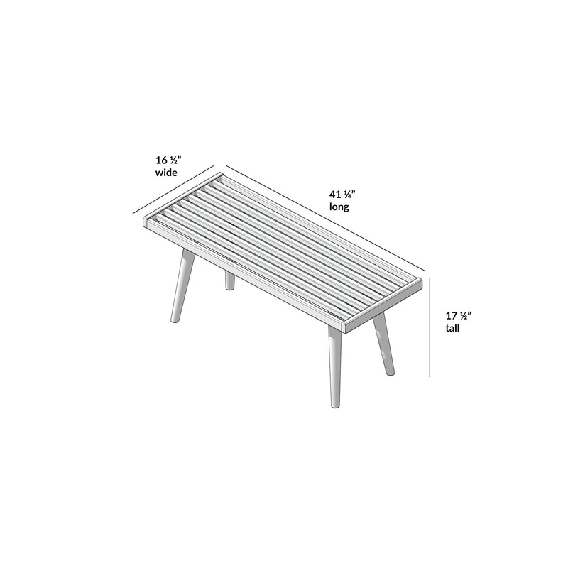- Mid-Century Styling: A unique, slatted surface and tapered legs offer a timeless, modern style that matches your room design and other mid-century modern decor; Bench is perfect for placement in your entryway, bedroom, or covered outdoor space