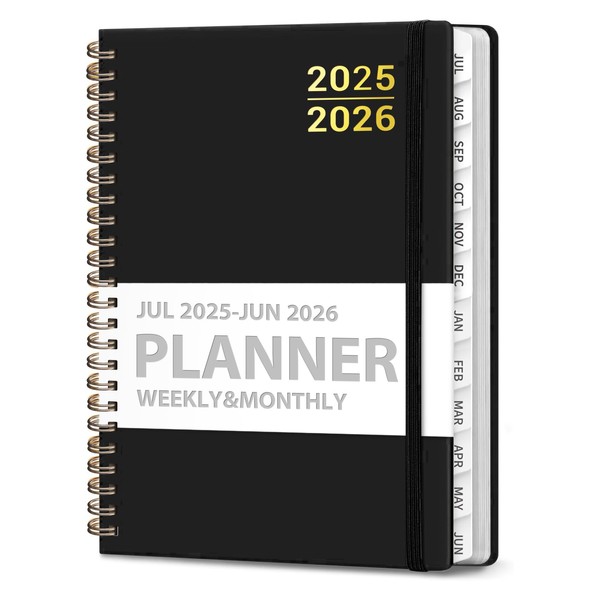 Planner 2025-2026 For Women & Men, Weekly and Monthly Calendar Notebook (July 2025 - June 2026), Hardcover Spiral Bound School Teacher Student Planner with Tabs, Inner Pocket, A5 (6.3" x 8.5") - Black