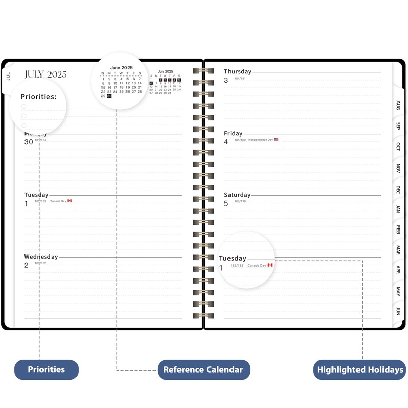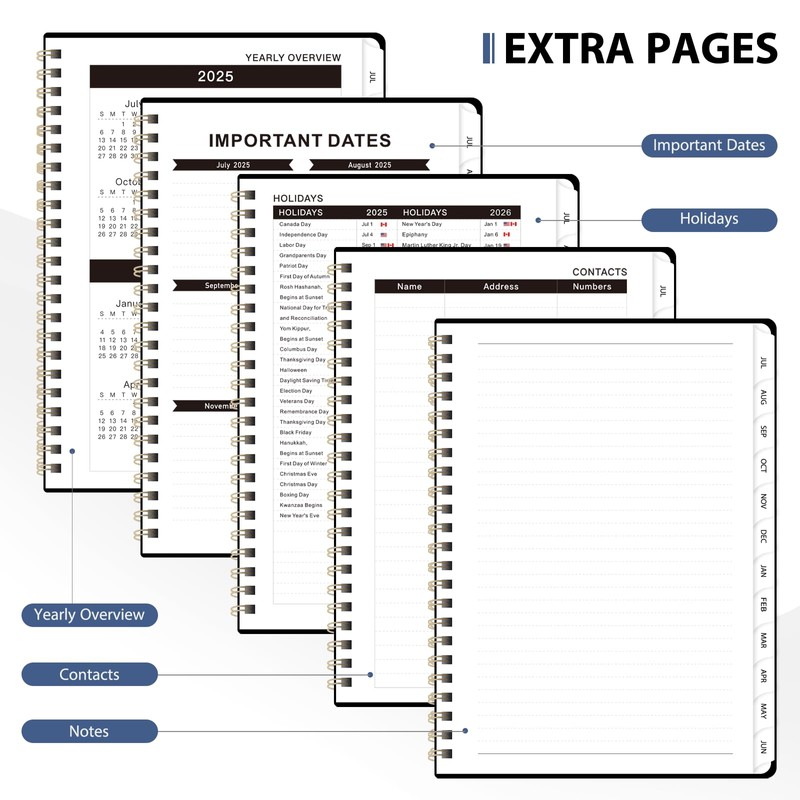 - [COMPREHENSIVE PLANNING] – This Planner 2025-2026 covers12 months from July 2025 to June 2026. It includes monthly and weekly calendar pages, providing ample room to track exams, meetings and important events - making it a useful organizational tool for your entire academic or work year.