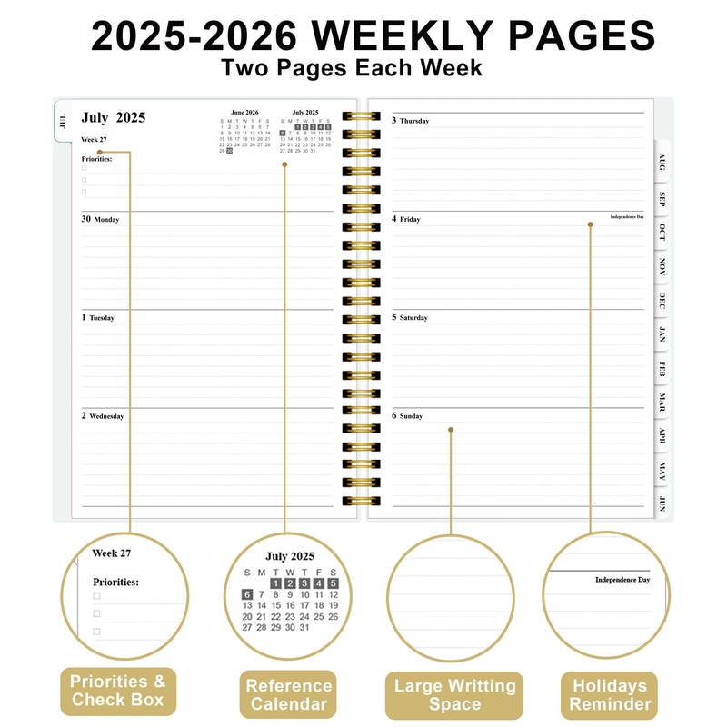 - Weekly Planning - Weekly spread include to-do list and check box to organize your daily schedule, and plenty of space to write detail appointments and keep track of all days clearly with the weekly view. This calendar agenda 2025 2026 can fit the scheduling needs of busy people.